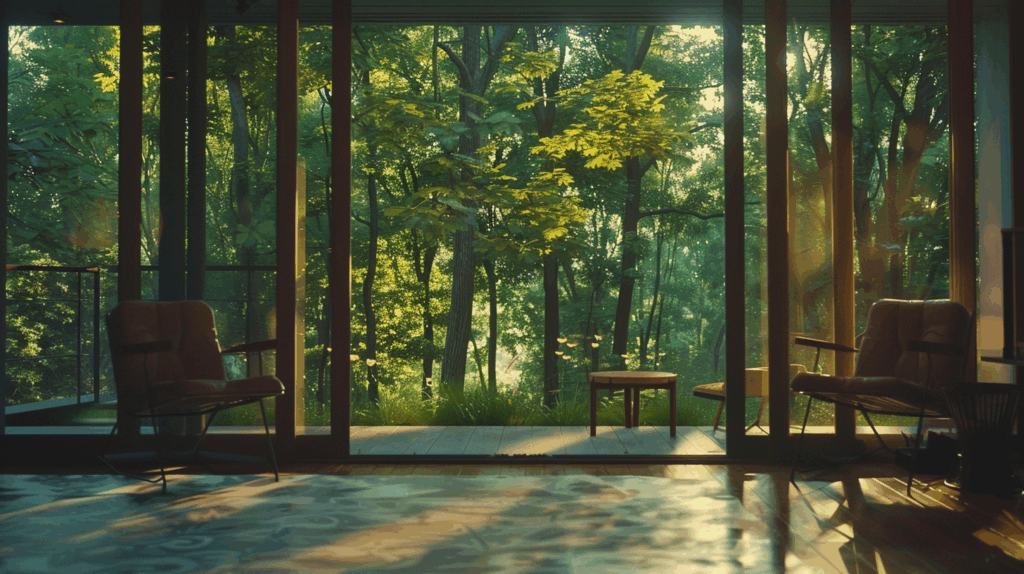 Jede Wohneinheit verfügt über großzügige Terrassen oder Gärten mit Waldblick.